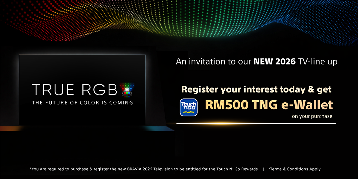 Enjoy an additional exclusive reward of RM500 Touch ’n Go eWallet credit, only for customers who register interest, purchase and register the latest BRAVIA 2026 models.